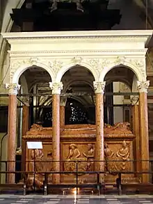 The most important work of Berrecci is the chapel of the last Jagiellonians, the Sigismund Chapel for King Sigismund I the Old at the Wawel (1517–1533) in Kraków; It is considered to be the most beautiful piece of Italian Renaissance architecture outside of Italy. Some years later Santi Gucci built the tombs of King Sigismund II Augustus and Queen Anna Jagiellon (the son and daughter of Sigismund I) inside the chapel. His death in 1537 was the result of an infection caused by a worksite accident during work on the tomb of Piotr Tomicki.[3]