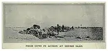 British field artillery in action supporting the Anglo-Indian attack on the Ottoman positions during the Battle of Sheikh Sa'ad.