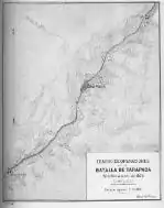 The Battle of Tarapacá occurred on November 27, 1879, during the Tarapacá Campaign of the War of the Pacific. A Chilean column of 2,300 soldiers led by Colonel Luis Arteaga recklessly attacked a numerically superior Peruvian contingent of 4,500 troops at Tarapacá commanded by Gen Juan Buendía, resulting in a harsh defeat. The Chilean 2nd Line Regiment was the most damaged unit, losing almost half of its force, along with its commander Col. Eleuterio Ramírez and his second in command, Lt. Col. Bartolomé Vivar. Also, the unit lost its banner, which was recovered six months later after the battle of Tacna. Despite the victory, the Allies could not contest for the domination of the Tarapacá department, abandoning it to Chilean control.