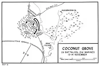 The Battle of the Coconut Grove was a battle between United States Marine Corps and Imperial Japanese Army forces on Bougainville. The battle took place on 13–14 November 1943 during the Bougainville campaign, coming in the wake of a successful landing around Cape Torokina at the start of November, as part of the advance towards Rabaul as part of Operation Cartwheel.