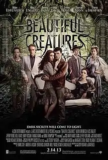 Beautiful Creatures is a 2013 American romantic gothic fantasy film written for the screen and directed by Richard LaGravenese based on the 2009 novel of the same name by Kami Garcia and Margaret Stohl.[4] The film stars Alden Ehrenreich, Alice Englert, Jeremy Irons, Viola Davis, Emmy Rossum, Thomas Mann, and Emma Thompson.