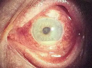 | A person with hypopyon which can be seen in anterior uveitis in a person with Behçet's disease | |