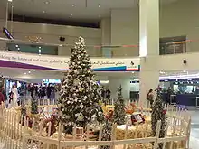 The airport also includes banks, a post office, prayer rooms, and a tourist information centre (managed by the Ministry of Tourism). The airport is the first in the region to offer 5G wireless internet services available for free for 2 hours.[9]
