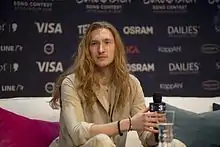The Belarusian performance featured Ivan performing on stage alone wearing a beige outfit with a transparent screen prop that displays holograms of a nude image of Ivan, wolves, people and musicians playing instruments.[23][24] The stage colours transitioned between blue and red with the LED screens displaying landscapes and wolves. Ivan was joined by five off-stage backing vocalists: Anna Linnéa Isbäck, Herman Gardarfve, Jimmy Claeson, Melanie My Rosas and Ksenia Pavroz.[25]