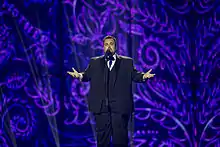 The final took place on 16 March 2014 at the Sportpaleis in Antwerp.[4] The expert panel participated in the final solely in an advisory role. Seven international jury groups consisting of five members each and a public televote determined the winner, "Mother" performed by Axel Hirsoux.[11] The public and the jury each had a total of 280 points to award. Each jury group awarded points as follows: 4, 6, 8, 10 and 12 points. The public vote was based on the percentage of votes each song achieved through the following voting methods: SMS and online voting. For example, if a song gained 10% of the public vote, then that entry would be awarded 10% of 280 points: 28 points.[12][13]