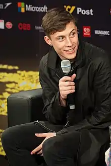 Shortly after the first semi-final, a winner's press conference was held for the ten qualifying countries. As part of this press conference, the qualifying artists took part in a draw to determine which half of the grand final they would subsequently participate in. This draw was done in the order the countries were announced during the semi-final. Belgium was drawn to compete in the first half.[23] Following this draw, the shows' producers decided upon the running order of the final, as they had done for the semi-finals. Belgium was subsequently placed to perform in position 13, following the entry from Australia and before the entry from Austria.[24]