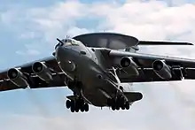 The Beriev A-50 (NATO reporting name: Mainstay) is a Soviet airborne early warning and control (AEW&C) aircraft based on the Ilyushin Il-76 transport. Developed to replace the Tupolev Tu-126 "Moss", the A-50 first flew in 1978. Its existence was revealed to the Western Bloc in 1980 by Adolf Tolkachev.[1] It entered service in 1984, with about 40 produced by 1992.