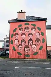 Bloody Sunday, or the Bogside Massacre,[1] was a massacre on 30 January 1972 in the Bogside area of Derry, Northern Ireland, when British soldiers shot 26 civilians during a protest march against internment without trial. Fourteen people died: 13 were killed outright, while the death of another man four months later was attributed to his injuries. Many of the victims were shot while fleeing from the soldiers, and some were shot while trying to help the wounded.[2] Other protesters were injured by shrapnel, rubber bullets, or batons, and two were run down by army vehicles.[3][4] All of those shot were Catholics. The march had been organised by the Northern Ireland Civil Rights Association (NICRA). The soldiers were from the 1st Battalion, Parachute Regiment ("1 Para"), the same regiment implicated in the Ballymurphy massacre several months prior.[5]