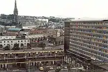 The City of Derry was perceived by many Catholics and Irish nationalists in Northern Ireland to be the epitome of what was described as "fifty years of Unionist misrule": despite having a nationalist majority, gerrymandering ensured elections to the City Corporation always returned a unionist majority. At the same time the city was perceived to be deprived of public investment: motorways were not extended to it, a university was opened in the relatively small (Protestant-majority) town of Coleraine rather than Derry and, above all, the city's housing stock was in an appalling state.[15] The city therefore became a significant focus of the civil rights campaign led by organisations such as Northern Ireland Civil Rights Association (NICRA) in the late 1960s and it was in Derry that the Battle of the Bogside – the event that more than any other pushed the Northern Ireland administration to ask for military support for civil policing – took place in August 1969.[16]
