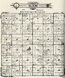 Organization of Bloom Township was approved by the Nobles County Board on March 18, 1879. The original choice of name for the township was Afton. However, the Nobles County Board was notified by the state auditor's office that another Afton Township existed in Washington County, Minnesota. The name was then changed to Bloom Township in honor of Peter Bloom, the township's first settler.[3] Afton Township in Washington County no longer exists, having been absorbed by the city of Afton, Minnesota, in 1971.[4]