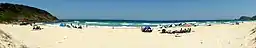 The beach stretches for 900 metres (3,000 ft) and is flanked by headland on either end. The beach is backed by 216 metres (709 ft) of hilly slopes filled with vegetation and can only be accessed by foot. It is a popular tourist attraction, with thousands flocking to the area during Christmas. Although un-patrolled, few drownings have been recorded at the beach. High swells and rough surf are common at times and it is regarded as the best surf beach in the area with usually consistent swell. There are also other beaches nearby such as Boomerang Beach, New South Wales and Elizabeth Beach, New South Wales.