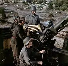 The name Bofors is strongly associated with the 40 mm anti-aircraft gun used by both sides during World War II. This automatic cannon is often simply called the Bofors gun and saw service on both land and sea. It became so widely known that anti-aircraft guns in general were often referred to as Bofors guns.[10] Another well-known gun made by the company was the Bofors 37 mm anti-tank gun, a standard anti-tank weapon used by a variety of armies early in the war. It was built under licence in Poland and the United States and was also used in a variety of tanks, including the 7TP and M3A3 Stuart.[11]