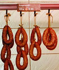 Bregenwurst (also Brägenwurst) is a specialty sausage of Lower Saxony and Saxony-Anhalt traditionally made of pork, pork belly, and pig or cattle brain.[1][2]