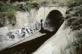 The drain tunnel from the film is located just down the street from the San Clemente High School football field and goes under the freeway by the Pico exit off-ramp.