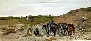 After the conquest of the Kingdom of Two Sicilies in 1861 by the Savoyard Kingdom of Sardinia (later Kingdom of Italy), the most famous and well known form of brigandage in the area emerged.[8] According to Marxist theoretician Nicola Zitara, social unrest, especially among the lower classes, occurred due to poor conditions, and the fact that the Risorgimento benefited in the "Mezzogiorno" only the bourgeoisie vast-land owning classes.[3] Many turned to brigandage in the mountains of Basilicata, Campania, Calabria and Abruzzo, but the brigands were not a homogeneous group, nor did they operate with any common cause. Amongst the brigands were a mixture of people, with different working backgrounds and motives; the brigands included former prisoners, bandits and other people who the Italian government regarded as common criminals, but also former soldiers and loyalists of the Bourbon army, as well as foreign mercenaries in the pay of the Bourbon king in exile, some nobles, poverty stricken farmers and peasants who wanted land reforms: both men and women took up arms.[3]