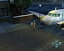 The gameplay in Broken Sword: The Sleeping Dragon is a departure from previous instalments in the series, using a direct control interface.[2] The player guides George Stobbart's movements with a keyboard or gamepad, while Nicole Collard is also a playable character at certain times.[3] George must collect objects that can be used with other collectable objects, parts of the scenery, or other people in the game world in order to solve puzzles and progress in the game.[2] George can engage in dialogue with other characters through conversation trees to gain hints of what needs to be done to solve the puzzles or to progress the plot.[2] The player has action choices in the bottom right of the screen - there are four circles with anywhere from one to four actions available at any time; the player selects the desired action with the corresponding key.[2] As in the first two Broken Sword games, in The Sleeping Dragon player character death is possible.[3]