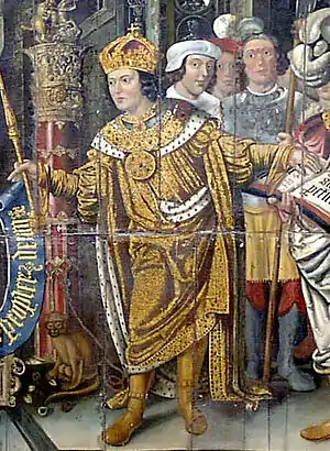 ![]() Imaginary depiction of Cædwalla by Lambert Barnard | |
