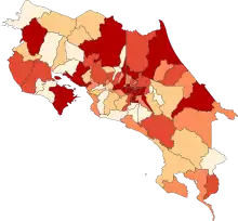 On 15 March, a total of 350 educational centers have been closed down.[20] Three patients were placed in ICU.[21] Health authorities also confirmed cases in the cantons of Santa Ana, Grecia, Nicoya, La Unión, Poás, Pérez Zeledón, San Pablo and Barva.[22]