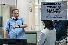On April 2, IATF-EID chairman and Cabinet Secretary Karlo Nograles urged the local governments of Luzon to require residents to wear face masks, face shields, or any improvised alternatives while out in public for the duration of the enhanced community quarantine.[86] In response, the mayors of Malabon, Mandaluyong,[87] Muntinlupa,[88] Parañaque,[89] Pasay, Quezon City,[90] and Valenzuela, each issued ordinances to implement the measure within their respective jurisdictions.[91]