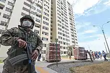 The second full day of quarantine on 17 March saw citizens being required to fill out an online form to obtain permission to leave home.[17] The military patrolled the streets of Lima to enforce this, and people were not allowed to walk together. At 8 pm that night through an organized effort, Peruvians and residents in Peru went out to their balconies and windows to applaud the front-line workers such as doctors, the Peruvian Armed Forces, market shop owners, and National Police of Peru to applaud their efforts during the pandemic.[18] The next day on 18 March, the government tightened the measures of quarantine, implementing a curfew from 8 PM-5 AM where citizens are not allowed to leave their homes.[19]