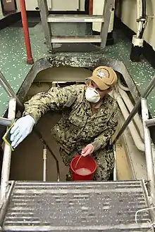 As of 20 April, 4,069 sailors had been moved off the ship,[35] out of the total crew of 4,500.[16] Some 94% of the crew had been tested for the virus, yielding 678 positive and 3,904 negative results.[35] As of 17 April, seven crew members were in the hospital including one in intensive care.[36] About 60% of the people who tested positive did not have symptoms.[37] As of 16 April, most of the ship had been cleaned.[38] Sailors kept testing positive for the virus even after 14 days of isolation; some who tested positive had previously tested negative.[35] The Navy temporarily suspended post-quarantine testing and extended the sailors' isolation, delaying plans to begin moves of the crew back to the carrier.[35] Some sailors volunteered for antibody testing.[39]