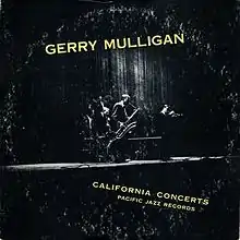 California Concerts (also referred to as Jazz Goes to High School) is a live album by saxophonist and bandleader Gerry Mulligan featuring performances recorded at the Stockton High School and Hoover High School in California in late 1954 and released on the Pacific Jazz label.[1][2] The original LP was the first 12 inch LP to be released on the Pacific Jazz label in 1955. The Gerry Mulligan feature track "Polka Dots and Moonbeams" with Bob Brookmeyer on piano was first released on the compilation LP The Genius of Gerry Mulligan in 1960. Although the tracks were recorded at a high school, recording took place on weekends and in the evening. Chet Baker was originally chosen to be the trumpet player of the session, but was jailed for his ongoing heroin addiction, so trumpeter Jon Eardley took Baker’s place sounding very similar to Baker.