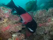 The California sheephead is a monandric protogynous hermaphrodite and is a commercially and recreationally valuable labrid.[12] It is a prominent species occupying the southern California rocky reef and kelp bed fish assemblage.[11][13] Both the ecology and life history patterns of California sheephead have been shown to vary with local environmental conditions.[14]