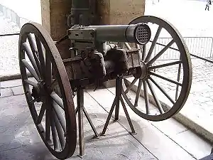 The Canon de 100 mm Modèle 1891 was French naval gun designed by the French designer Gustave Canet and produced at Schneider et Cie of Le Creusot in 1889. Five models of varying length were produced: Modèle 1891, Modèle 1892, Modèle 1893, Modèle 1895 and Modèle 1897. At some point in the guns development there was a switch from Separate loading QF ammunition to Fixed QF ammunition.[2] However the dimensions of the guns and their performance stayed largely the same.[1]