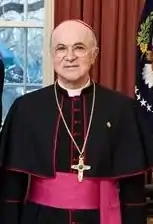 Carlo Maria Viganò (Italian pronunciation: [viganˈɔ]; born 16 January 1941) is an archbishop of the Catholic Church who served as the Apostolic Nuncio to the United States from 19 October 2011 to 12 April 2016. He previously served as Secretary-General of the Governorate of Vatican City State from 16 July 2009 to 3 September 2011. He is best known for having exposed two major Vatican scandals. These were the Vatican leaks scandal of 2012, in which he revealed financial corruption in the Vatican, and a 2018 letter in which he accused Pope Francis and other Church leaders of covering up sexual abuse allegations against former cardinal Theodore McCarrick.