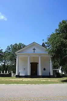 At the time of the nomination, the Carlowville Historic District contained 21 contributing properties, built primarily in the Colonial Georgian, Federal, and Greek Revival styles. Greek Revival is the dominate style.[2] The contributing buildings recognized by architectural historians as the most important structures to the district include: the Rumpt-Alison House (built circa 1840), a two-story Greek Revival-style house with a two-tiered portico; the Alison-Wade House (1849), a two-story Colonial Georgian-style house with a small one-story porch; St. Paul's Episcopal Church (1838), with a Greek Revival-style tetrastyle Doric portico and late nineteenth century Gothic Revival-style bell tower and windows; Carlowville Baptist Church (circa 1837), an end-gabled Federal-style building with a central entrance porch; the Lee-Wade House (1841), an end-gabled two-story Greek Revival-style house with a monumental portico that originally had a brick ground story;[3] the Alison-Youngblood House (1833), remodeled in the Neoclassical style during the 1920s; the St. Paul's Episcopal Church Rectory (mid-nineteenth century), a one-story Greek Revival-style building that originally had a brick ground story; and the Calhoun Law Office (1840), a small Greek Revival-style professional building that was built by Judge James Martin Calhoun, a nephew of John C. Calhoun.[2]