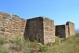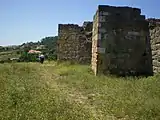 The Castle of Alcobaça is located at a hill about 70 meters high on the left bank of the Baça river.[1][2] It was rebuilt on the ruins of former fortress by D. Afonso Henriques in 1147. The castle was damaged by the Moors in 1191–1195. In the XII-XIII century D.Sancho ordered to rebuild the castle for the monks of Alcobaça and the inhabitants of this area defending against future attacks. In 1369 the castle was reinforced with a barbican by the Abbot of Alcobaça D. Frei João de Ornellas and the fallen tower was rebuilt on the side of Monastery. The 1422 earthquake damaged the castle, so it was restored in 1424. The Menagem Tower (keep) was remade in 1450 by D. Frei Gonçalo Ferreira.[2][3]