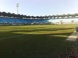 In 2009, they were involved in two historic milestones for the sport of rugby league in Europe. During their match away to the Welsh club Crusaders on 23 May, the two clubs played the first Super League match to not feature an English team.[2] History was also created on 20 June, when the club played in the first Super League game to be played in Spain, at Barcelona's Estadi Olímpic Lluís Companys, the venue for the 1992 Summer Olympics, against Warrington. The Dragons led 10–6 at halftime, but Warrington finished as the winners 12–24.[3] The purpose of the latter fixture was to promote the sport in Catalonia, with around 1000 tickets being sold in the local area, and the game was televised on the Catalan channel El 33.[4] Immediately after the game, Walters commented that the event in Spain could become an annual one,[3] apparently complementing comments made by the club's general manager about using a new high-speed link between Perpignan and Spain, supposed to start running within two years.[4]