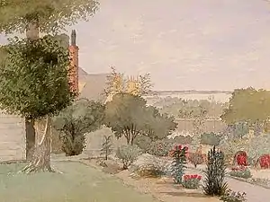 Mercer married Frances (or Fanny) Rice on 10 November 1813 at Bourton on the Water, Gloucestershire, while he was stationed in Woodbridge, Suffolk ;[32] she travelled with him to France after his leave in November 1815.[33] They had one son,[3] Cavalié A. Mercer, who edited the Journal after his father's death. Mercer and Fanny lived in Berkshire at the time of the Waterloo campaign, but in later life Mercer lived at Cowley Hill near Exeter. He died there on 9 November 1868 and is buried at St. David's Church, Exeter.[28][34]