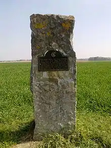 In mid-afternoon Mercer's Troop was suddenly ordered into the hottest part of Wellingtons' line, between the crossroads and Hougoumont, where its position is now marked by a memorial.[12] It deployed immediately behind the ridge road, which was on a low embankment. The bank provided excellent cover from enemy artillery and increased the effectiveness of Mercer's case-shot. The troop was between two squares of Brunswick infantry, whom Mercer regarded as unsteady. He was ordered to lead his men into the squares as cavalry closed, but decided they would be safer at their guns. Unlike all the other batteries in the sector, the troop's gunners never abandoned their guns to take refuge in the infantry squares.
