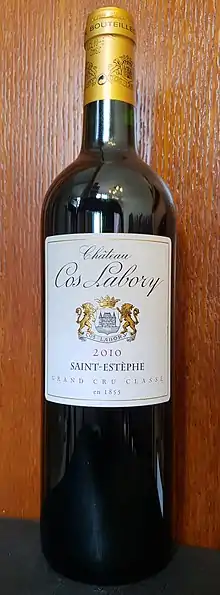 Château Cos Labory is a winery in the Saint-Estèphe appellation of the Bordeaux region of France. The wine produced here was classified as one of eighteen Cinquièmes Crus (Fifth Growths) in the Bordeaux Wine Official Classification of 1855.[1]