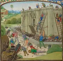 In return for services rendered, Philip IV of France made John II a peer, but John's death led to a 22-year war of succession in the dukedom. In 1341, John, count of Montfort, half-brother of John III, fought Charles de Blois (husband of Jeanne de Penthièvre) for the dukedom. It was vital for John to capture Brest's castle, to prevent it becoming a refuge for his enemies or a landing-point for his enemies' ally Edward III of England. To make certain his siege would be successful, he ensured he had a large numerical superiority and powerful siege engines to batter a breach in the walls, but even so the assault lasted several days. The castle's captain Garnier de Clisson was killed in a counter-attack when he was trapped outside the walls by the closed portcullis, and so the defenders surrendered on the condition that their lives would be spared. This was the last time the castle would be taken by force. John of Montfort restored the buildings he had damaged in the siege and added to the defences, putting in place a garrison under Tanguy du Chastel, who built Brest's first enclosure.