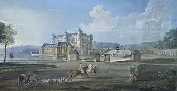 Subsequently, in response to an appeal for the restoration of the château, The Aga Khan donated €40 million, accounting for more than half of a €70 million needed by the Institut de France to complete the project.[3] In 2008 the World Monuments Fund completed the restoration of the Grande Singerie, a salon with paintings on the walls of monkeys engaged in human activities, once a fashionable salon motif, but with few examples surviving today.[4]