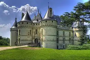 The name Chaumont derives from the French chauve mont, meaning "bald hill".[1] The first castle on this site, situated between Blois and Amboise, was built by Odo I, Count of Blois, in the 10th century, with the purpose of protecting his lands from attacks from his feudal rivals, Fulk Nerra, Count of Anjou.[2] On his behalf the Norman Gelduin received it, improved it and held it as his own. His great-niece Denise de Fougère, having married Sulpice d'Amboise, passed the château into the Amboise family for five centuries.