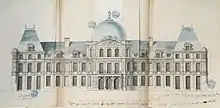 Unfinished project by Louis Le Vau for the central pavilion of the Vieux-Château. About 1655.