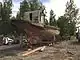 The ship was transported by truck to its current site in Chugiak using a trailer designed for moving buildings, but the additional weight required frequent tire replacement and supplemental braking by dump trucks from Wallace's concrete business. When she arrived in Chugiak she was put on blocks at the edge of Wallace's property along the Old Glenn Highway.