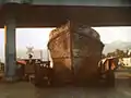 Chacon's hull after lifting for transport.