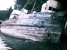 During her period owned by the Tillions; Chacon reportedly struck a boom cable in Icy Bay causing damage to the bow, and was subsequently beached alongside another wreck in Kachemak Bay. Chacon was originally powered with a 125 hp gasoline engine[4] that was later replaced with a General Motors "Jimmy" Detroit Diesel Series 71.