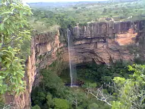 The park is in the Pantanal Biosphere Reserve, which also includes the Pantanal, Emas and Serra da Bodoquena national parks, and the Serra de Santa Bárbara and Nascentes do Rio Taquari, Pantanal de Rio Negro state parks.[3] The park is in the basin of the upper Paraguay River, protecting the headwaters of the Cuiabá River, one of the main feeders of the Mato Grosso Pantanal.[4] Chapada is a Brazilian word that means a region of steep cliffs, usually at the edge of a plateau.