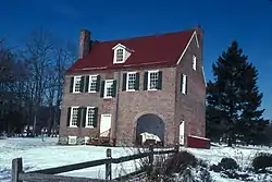 The area now known as Cherry Hill was originally settled by the Lenni-Lenape Native Americans before being displaced by the first settlers from England, namely Quaker followers of William Penn who arrived in the late 17th century.[22] The first settlement was a small cluster of homes named Colestown, in the perimeters of what is now the Colestown Cemetery on the corner of Route 41 (King's Highway) and Church Road. The municipality was founded on February 25, 1844, in Gloucester County as Delaware Township from half of the area of Waterford Township, and became part of Camden County at its creation some two weeks later on March 13, 1844.[23] Portions of the township were taken to form Stockton Township (February 23, 1859) and Merchantville (March 3, 1874).[23] At its territorial peak, Delaware Township included all of modern-day Cherry Hill Township, as well as the neighborhood of North Camden and the municipalities of Merchantville and Pennsauken (including Petty's Island in the Delaware River).
