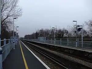 There are waiting shelters and an Up side booking office, which is open for a few hours each morning; the platforms are built of rails and sleepers. The "down" ticket office was burnt down by vandals in 1989.[1]