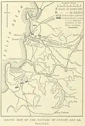 After the victory at Concón the insurgent army, under command of General Campos, pressed on towards Valparaiso, but were soon brought up by the strong fortified position of the Balmacedist general Orozimbo Barbosa at Viña del Mar, whither Balmaceda hurried up all available troops from Valparaiso and Santiago, and even from Concepcion. Del Canto and Körner now resolved on a daring step. Supplies of all kinds were brought up from Quintero to the front, and on the 24th of August the army abandoned its line of communications and marched inland. The flank march was conducted with great skill, little opposition was encountered, and the rebels finally appeared to the southeast of Valparaiso.