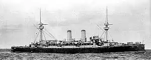 The new ship was defined by historian Adrian J. English as "the first armored cruiser to be built for any navy,"[3] and the contemporary Naval Annual called it "one of the most powerful cruisers in the world."[4] Another historian, Peter Brook, believes that the newer Esmeralda should be classified as a lesser "belted" cruiser due to design faults present after its conversion from a protected cruiser while under construction.[5]