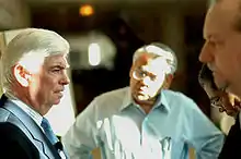 Dodd continued campaigning in Iowa and New Hampshire visiting up to four different cities in one day. Political commentator Bill O'Reilly slammed Dodd after he appeared on The O'Reilly Factor in August, characterizing him as a kool-aid drinker and blind follower of the far left. O'Reilly chastised Dodd and branded him a traitor for his perceived betrayal of fellow Connecticut Senator Joe Lieberman during the 2006 Senatorial election.[39] On August 20 he attended a debate that aired on ABC and was moderated by George Stephanopoulos. He commented on the need for a president that can bring people from both parties together, "...it's about getting this job done. We don't elect a king or a queen or a dictator in November, we elect a president. The margins are thin. No one political party is going to write all of this. It takes leadership that knows how to bring people together."[40] As the month wound down for the campaign and as Dodd continued on the trail, the month of September loomed in the horizon as did an upcoming debate in Washington on the primary focus of the campaign, the Iraq War. Accompanying Dodd on the trail was the International Association of Fire Fighters, which handed him their endorsement on August 29.[41]