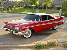 Although the car in the film is identified as a 1958 Plymouth Fury[11] – and in 1983 radio ads promoting the film, voiceover artists announced, "she's a '57 Fury" – two other Plymouth models, the Belvedere and the Savoy, were also used to portray the malevolent automobile onscreen. John Carpenter placed ads throughout Southern California searching for models of the car, and was able to purchase twenty-four of them in various states of disrepair, which were used to build a total of seventeen copies of the film car.[9] All cars were two door hardtops.