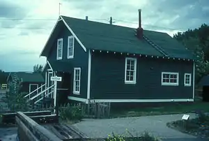 The Seward Highway follows part of the southern edge of the park along Turnagain Arm.[25] This stretch of highway is listed as a National Scenic Byway and is designated as an All-American Road.[25] Along Seward Highway is park headquarters located at the Potter Section House State Historic Site which once served as an important worker camp for the Alaska Railroad.[1] There are several viewpoints along the Seward Highway.[26] One of the most visited is Beluga Point, at milemarker 110.5, named for the beluga whales (Delphinapterus leucas) that frequent the area.[27] Another popular viewpoint along the Seward Highway is Windy Corner at milemarker 106 where Dall sheep (Ovis dalli) are often visible just up the hill.[26] The McHugh Creek Day use area features hiking trails and picnic areas.[28] The Bird Creek Campground is located south of Anchorage off the Seward Highway.[29] As with all campgrounds in the park, each camping site boasts a wooded spot for recreation and relaxtion, a fire ring and picnic table, with potable water and latrines nearby.[29] Park volunteers at campgrounds and elsewhere offer assistance and answer visitor questions.[29] Firewood is often available nearby for a small fee.[29] Though dirt bikes are prohibited, the Bird Valley Trail System is the only location in the park open to ATVs all year round.[30][31]